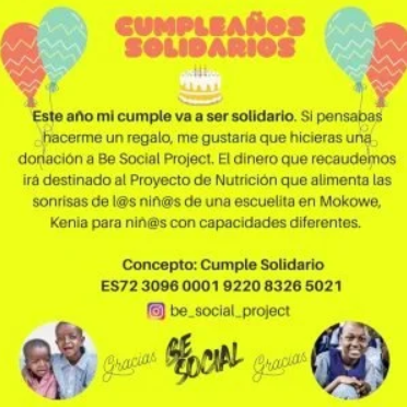 It’s very simple. Just get in touch with us by email or via a private message on Instagram. We will provide you with an invitation explaining what Be Social Project is about and how donations can be made. Donations can be collected through your own account or Bizum—so you can later transfer the total amount to us—or they can be made directly to the NGO’s bank account.