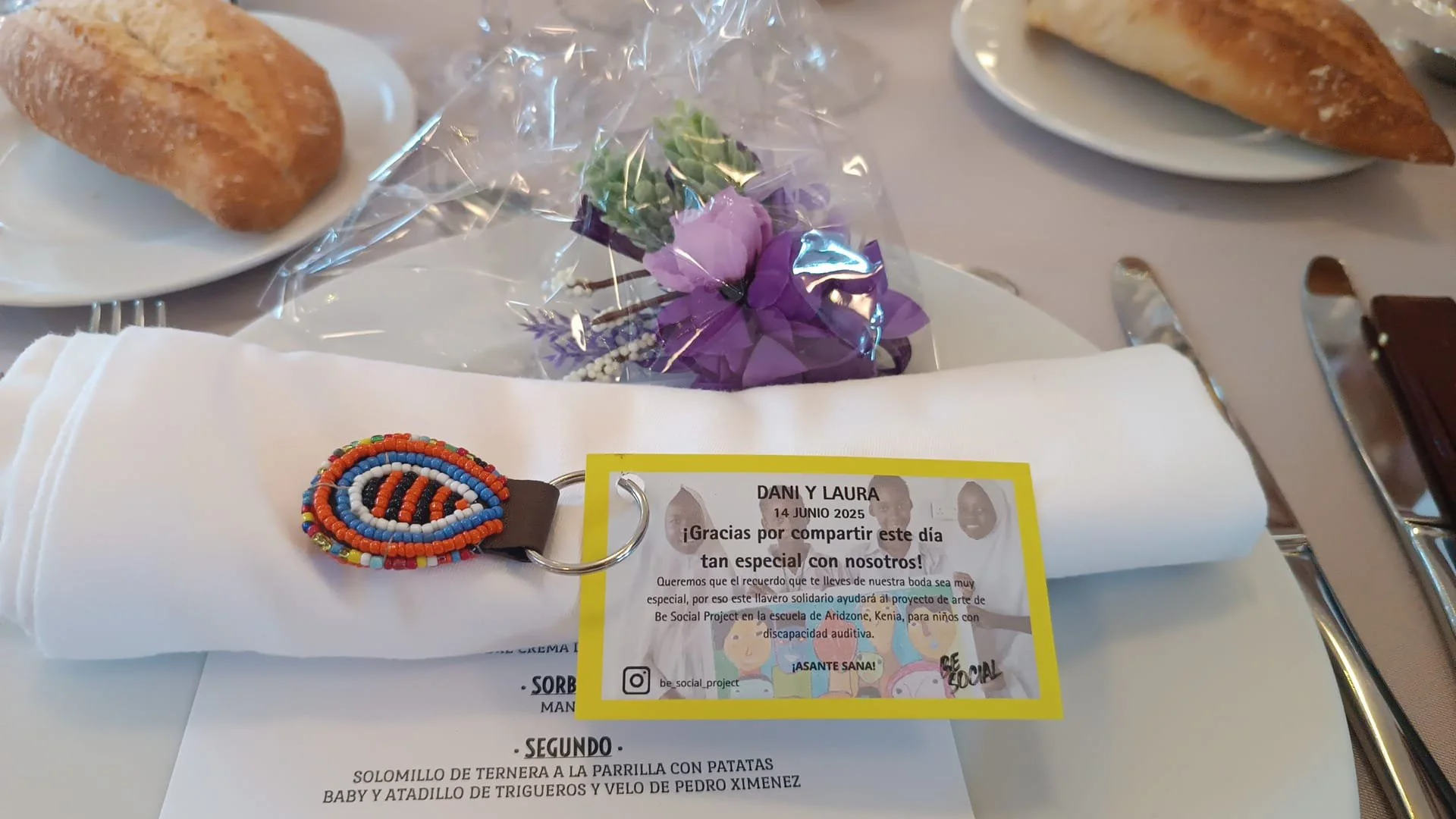 Si prefieres apostar por la sencillez, puedes hacer una donación solidaria en nombre de tus invitados. Cada uno recibirá una tarjeta en su mesa explicando el impacto de vuestro gesto, convirtiendo la celebración en una acción colectiva de solidaridad.